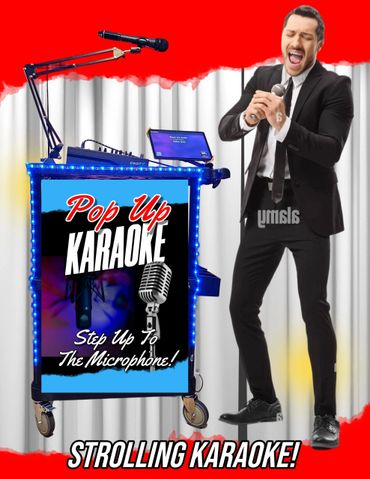 PopUp Karaoke is our invention & is 100% exclusive to us. It's the brain child of our Emcee Greg Thompson & has turned out to be extremely popular. He took zero shortcuts whIen creating this using studio quality equipment. The uses the same 61,000 song